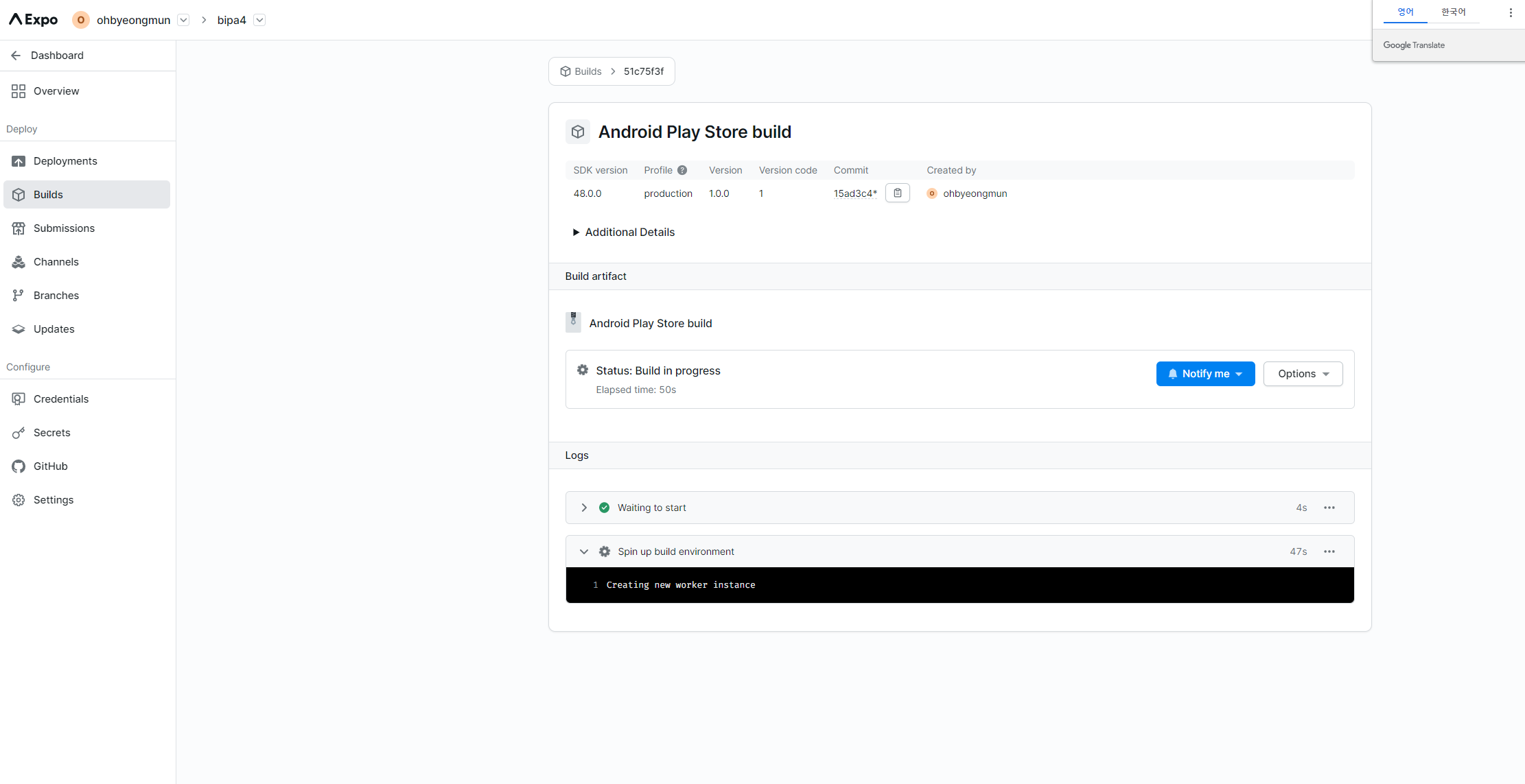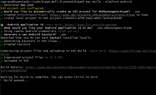 EAS Build용 Android 프로젝트를 구성하려면 아래 커맨드를 입력한다.