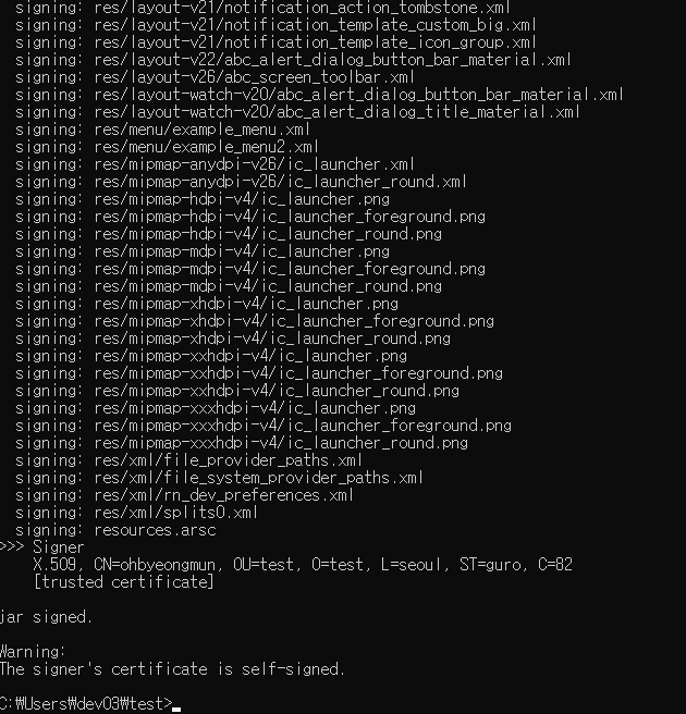 이제 생성 된 .apk 파일을 서명하겠습니다