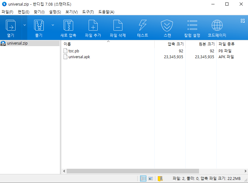 변환한 .apks 파일을 .zip 확장자로 변경 후 압축 해제하면 apk 파일을 추출 할 수 있다.