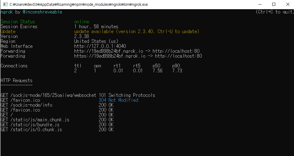 ngrok 외부에서 로컬 서버 접속 환경 구성