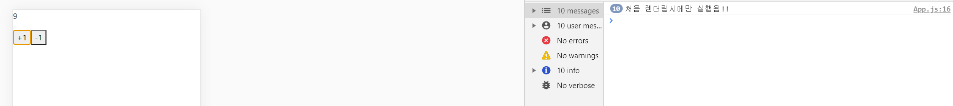 아래 예제와 같이 버튼을 클릭했을때 number의 값이 변화가 생길때에도 실행되게 해보겠습니다.