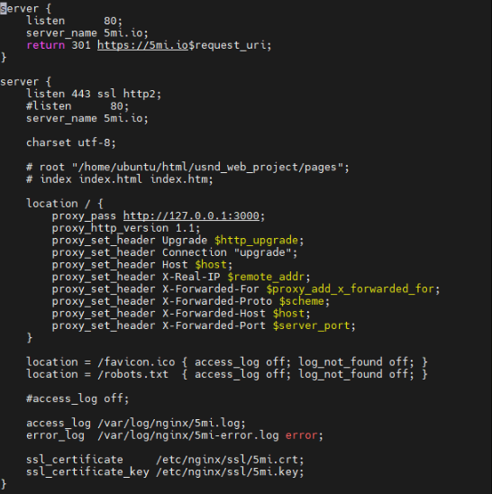 이후 nginx conf 설정에 아래 이미지처럼 / 뒤로 접속이 있을 경우 3000 포트로 연결 시켜주는 식