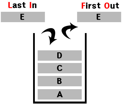 - 이름처럼 데이터를 쌓는 방식(LIFO)으로 데이터를 저장 및 정렬하는 자료구조