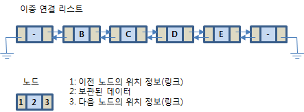 - 이중연결리스트는 이전과 다음 데이터의 주소값을 갖고 있는 연결리스트다.