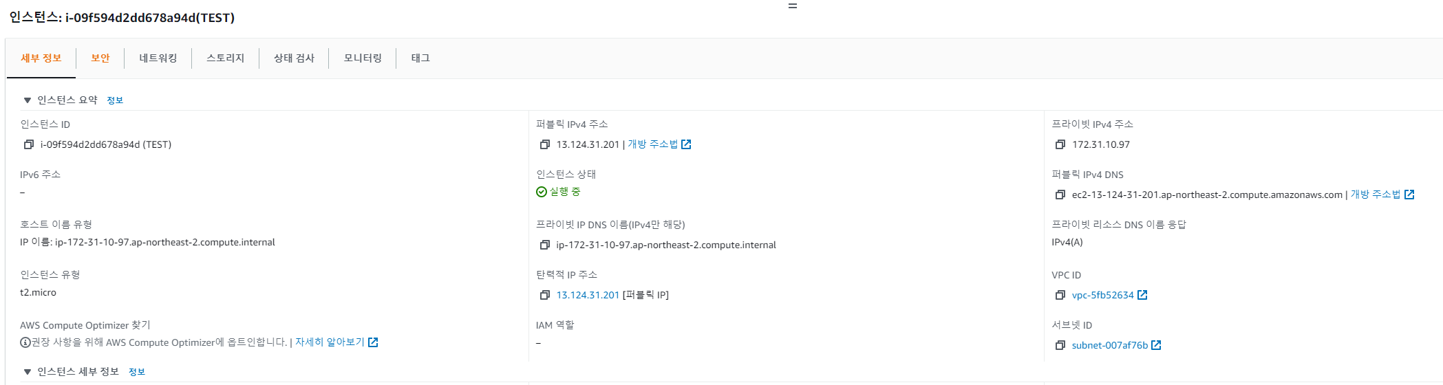퍼블릭 IPv4 DNS와 프라이빗 IPv4 DNS는 다른 곳 에서 해당 아이피로 접속이 가능하게 해줌